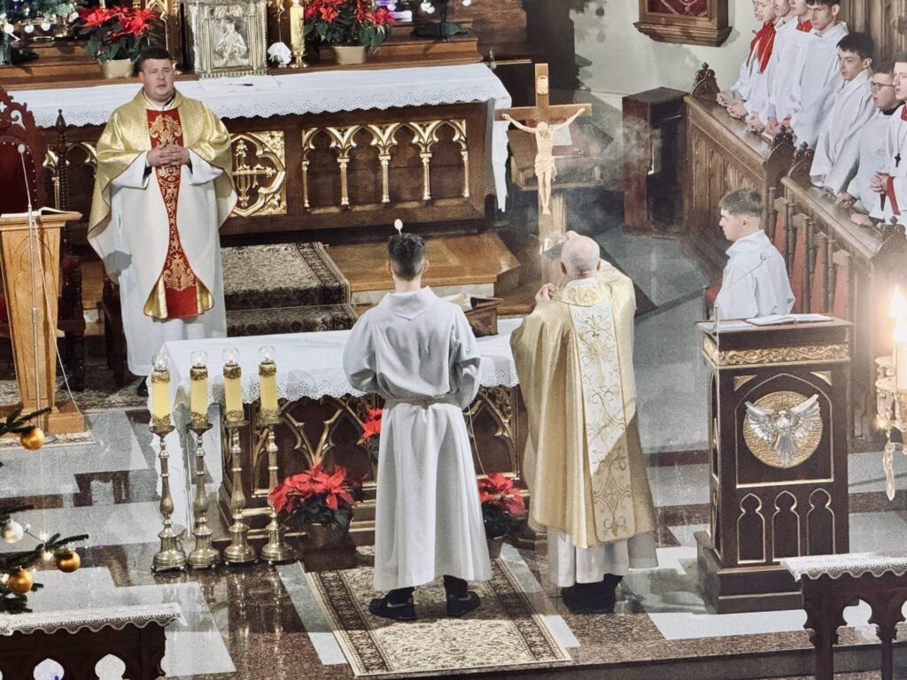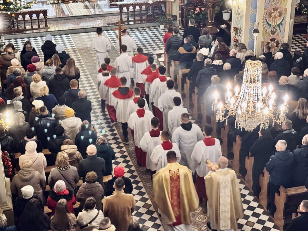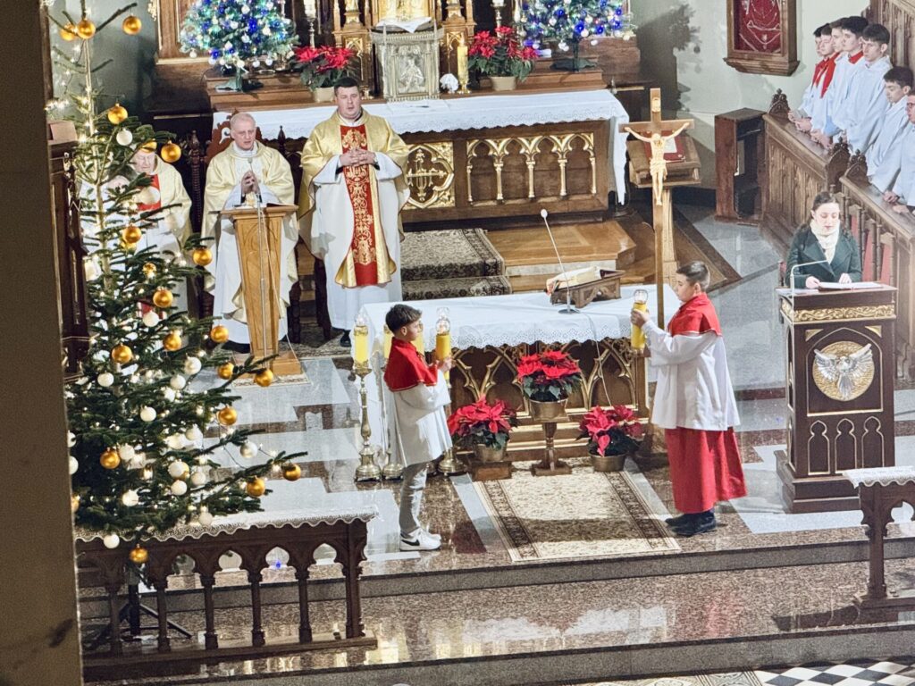W noc Narodzenia Pańskiego nasza wspólnota parafialna zgromadziła się na Mszy Świętej Pasterskiej pod przewodnictwem księdza proboszcza aby radośnie celebrować tajemnicę narodzin Jezusa Chrystusa.